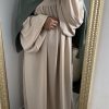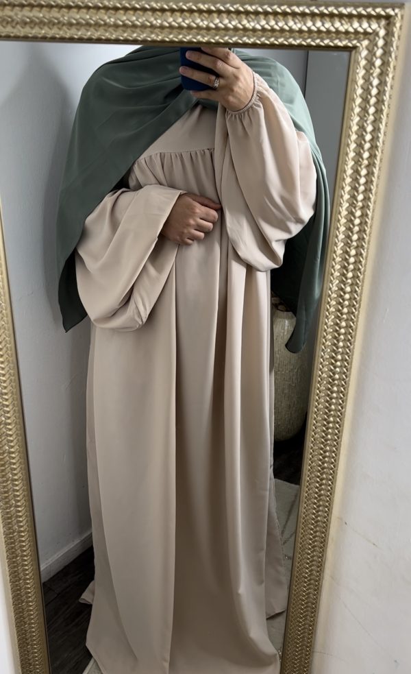 Abaya manches bouffantes Soie de Médine – Beige nude